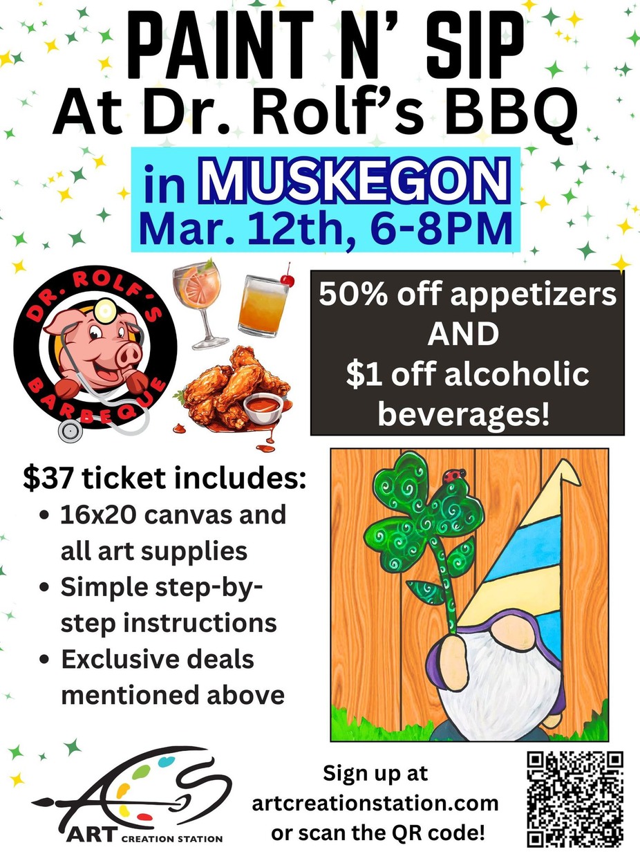 Join us for a festive St. Patty’s themed Paint & Sip on Thursday, March 12th from 6pm - 8pm. Enjoy a fun, creative evening making Shamrock Gnome décor while soaking in great BBQ, cold drinks, and plenty of St. Patrick’s Day spirit. As a special perk for attendees, receive one $1 off drink and 50% off appetizers during the event. Grab your friends and make it a creative night out at Dr. Rolf’s — come hungry, leave happy, and take home your masterpiece. Click here for tickets!