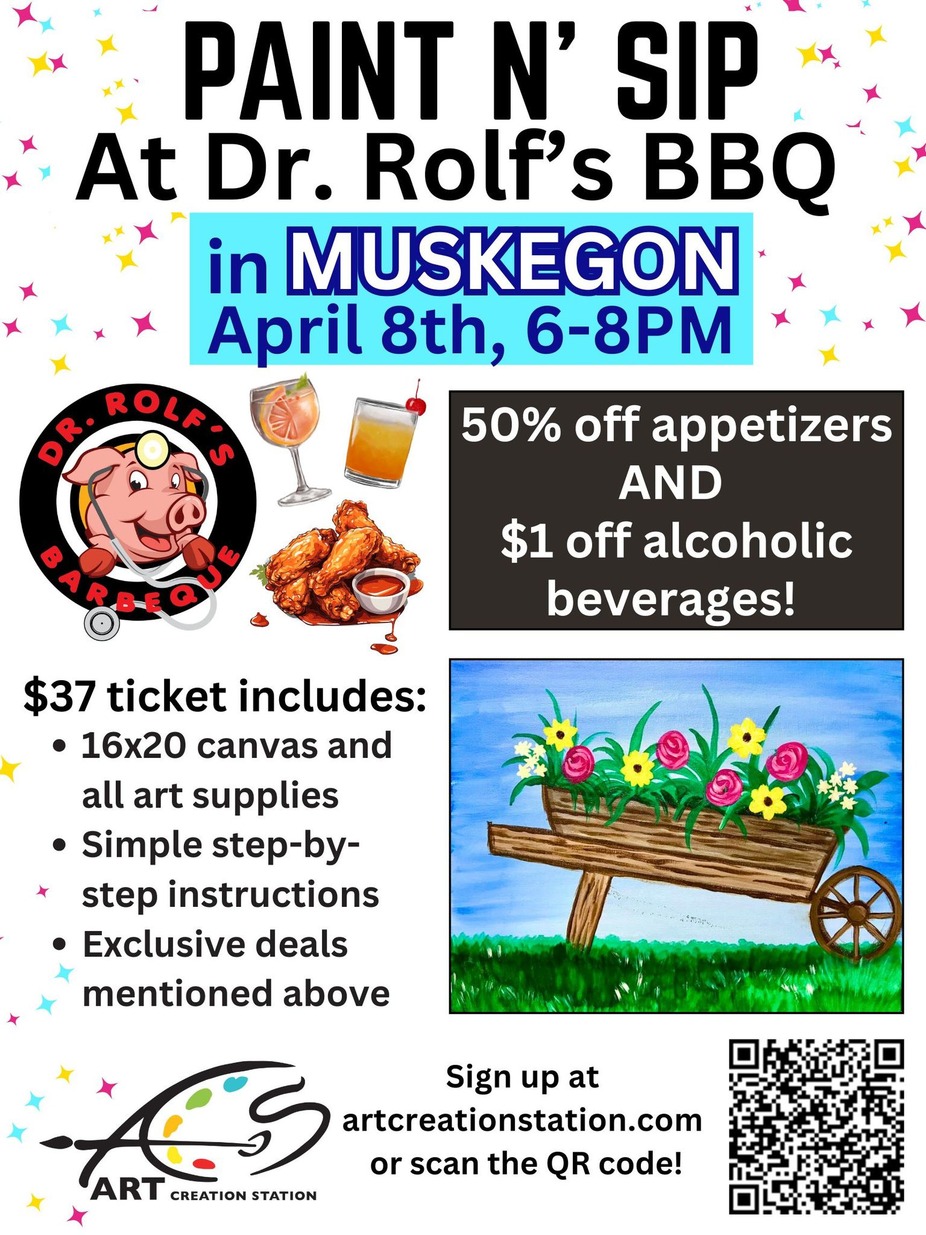 Join us for another Paint & Sip on Wednesday, April 8th from 6pm - 8pm. Enjoy a fun, creative evening painting a spring-inspired design while soaking in great BBQ, cold drinks, and laid-back vibes. As a special perk for attendees, receive one $1 off drink and 50% off appetizers during the event. Grab your friends and make it a creative night out at Dr. Rolf’s — come hungry, leave happy, and take home your masterpiece. Click here for tickets!